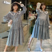 マタニティ 妊婦 ワンピース フリル 切り替え バイカラー 体型カバー 着痩せ 【大きいサイズあり】 sweet系 産前産後 チュニック ドレス 配色 【大きいサイズ】