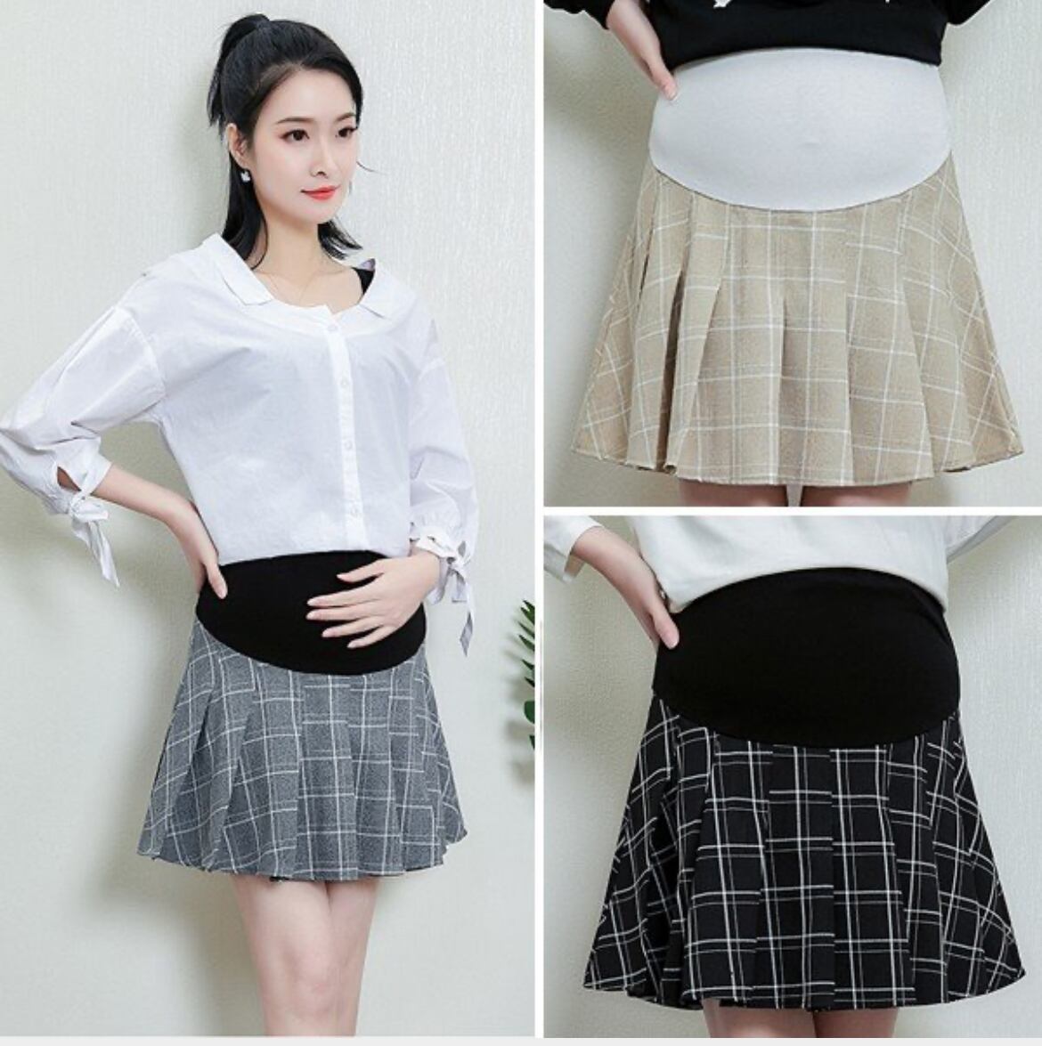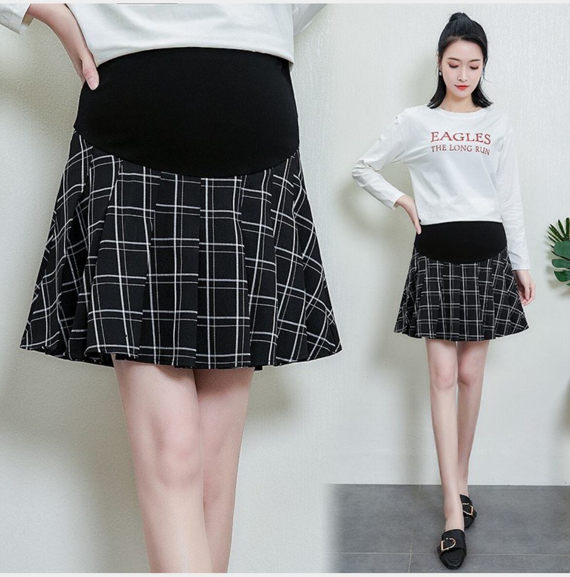マタニティ 服 スカート ミニスカート 膝丈 プリーツスカート チェック柄 Aライン スカート