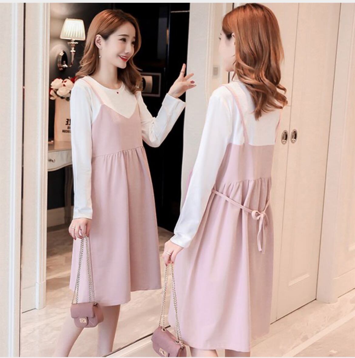 ワンピース マタニティウェア レディース 春 秋 長袖ワンピ マタニティ 服 妊婦服 妊娠服 産前