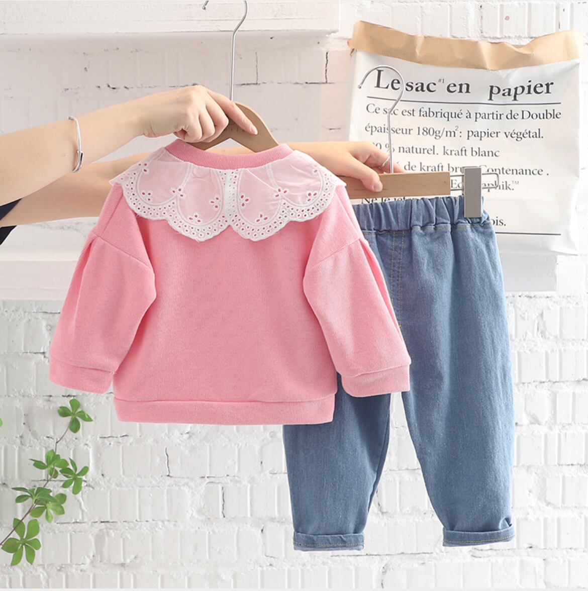 mineka&キッズ服の女の子セットアップは、カーディガン、シャツ、ジーパンがセットになった便利なアイテムです。カジュアルなデザインでありながらも、上品さも漂わせることができる嬉しいセットアップです。